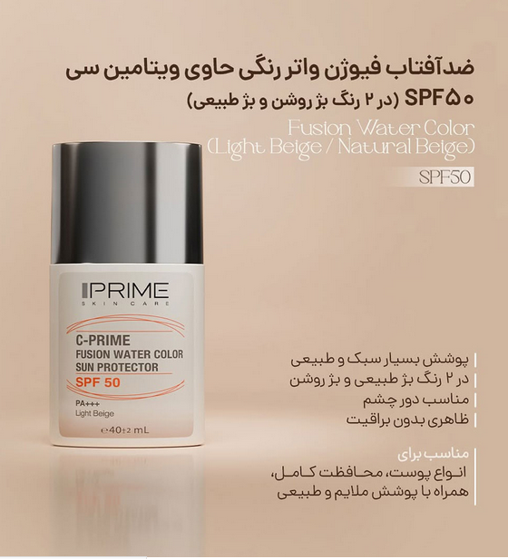 کرم ضد آفتاب فیوژن واتر پریم یک محصول مؤثر برای محافظت از پوست در برابر اشعههای مضر UV است. ضد آفتابها با ایجاد لایهای محافظ روی پوست، از آسیبهای ناشی از نور خورشید مانند آفتابسوختگی، لکهای پوستی و پیری زودرس جلوگیری میکنند.ضد آفتاب فیوژن واتر پرایم با بافتی بسیار سبک و جذب سریع، برای انواع پوست، بهویژه پوستهای چرب و مختلط مناسب است. این محصول بدون ایجاد حس چربی و سنگینی، محافظت کامل SPF50 را ارائه میدهد و در برابر تعریق و آب مقاوم است.