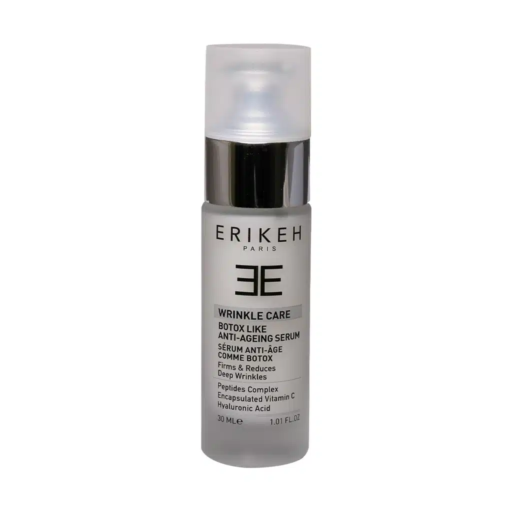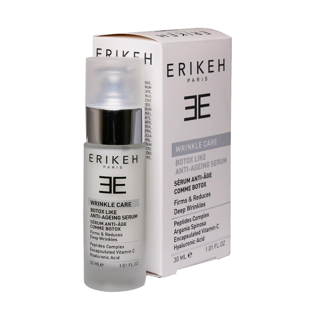 سرم ضد چروک شبه بوتاکس اریکه با ترکیبات گیاهی قوی شبه بوتاکس فرموله شده است تا پوست شما را از آثار افزایش سن نجات دهد و طراوت، شفافیت و لطافت آن را احیا کند. این سرم حاوی ویتامین c و کمپلکس بازسازی کننده است که پوست را تقویت، مرطوب و تغذیه میکنند و با تحریک روند بازسازی پوست، چین و چروک و لکههای پوستی را از بین میبرند. همچنین این سرم محرک ساخت کلاژن و الاستین بوده و عضلات را لیفت و محکم میکند. علاوه بر آن در فرمولاسیون این محصول از ویتامین A جهت بازسازی کننده DNA سلولی استفاده شده است. این سرم پوست با اثر ضد اسپاسم بر روی عضلات عمق و طول چروک را کاهش میدهد. همچنین سرم ضد چروک بوتاکس اریکه برای استفاده انواع پوست مناسب بوده و برای تمام نواحی مختلف صورت از جمله چشم مناسب است. همچنین از این سرم میتوان به عنوان درمان نگهدارنده، پس از تزریق یوتاکس نیز استفاده کرد.