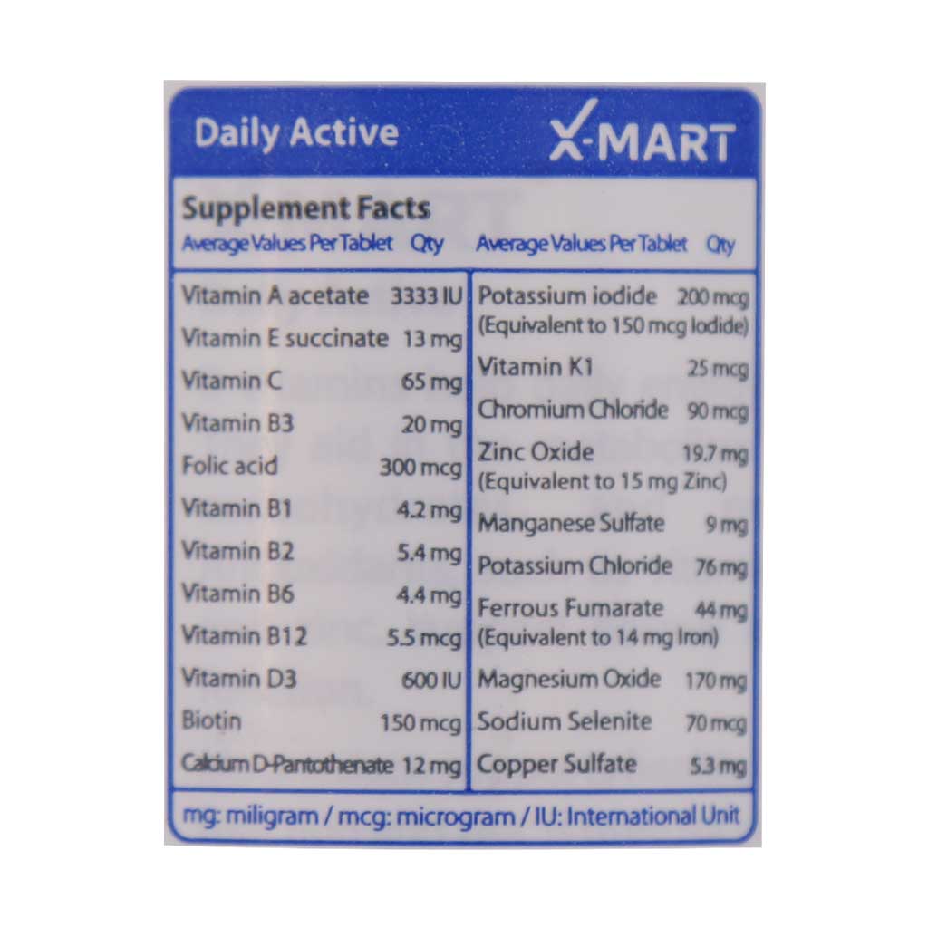 روزی یک عدد مکمل Daily Active ایکس مارت همراه با وعده غذایی و معده پر میل شود.
